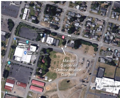The Cowlitz County MG Demonstration Garden located at the Cowlitz County Fairgrounds was established in the 1980’s, was created by Master Gardeners to provide a working area to practice various gardening techniques.  Today, the demonstration gardens, including many small beds, neighboring Cougar Cottage and Loowit Gardens, are still works in progress for the benefit of the Master Gardeners, hosting an occasional mini-class and maintaining environmentally suitable beds for annuals, perennials, blueberries, fruit trees and vegetables. Directions: Take Exit 39 off I-5 (Kelso/Longview Exit). Follow Allen Street west through downtown Kelso and across the Allen Street Bridge. Enter the left turn lane and turn left onto 1st Avenue. Go 3 blocks and turn right onto Washington Street. Go 3½ blocks, turn left to entrance to Cowlitz Exposition Center (formerly the Fairgrounds). The garden is on the right of the entrance. Parking is allowed on the grass as long as no other activities are taking place in the area. Hours: Grounds are open 8 a.m. – 4 p.m.